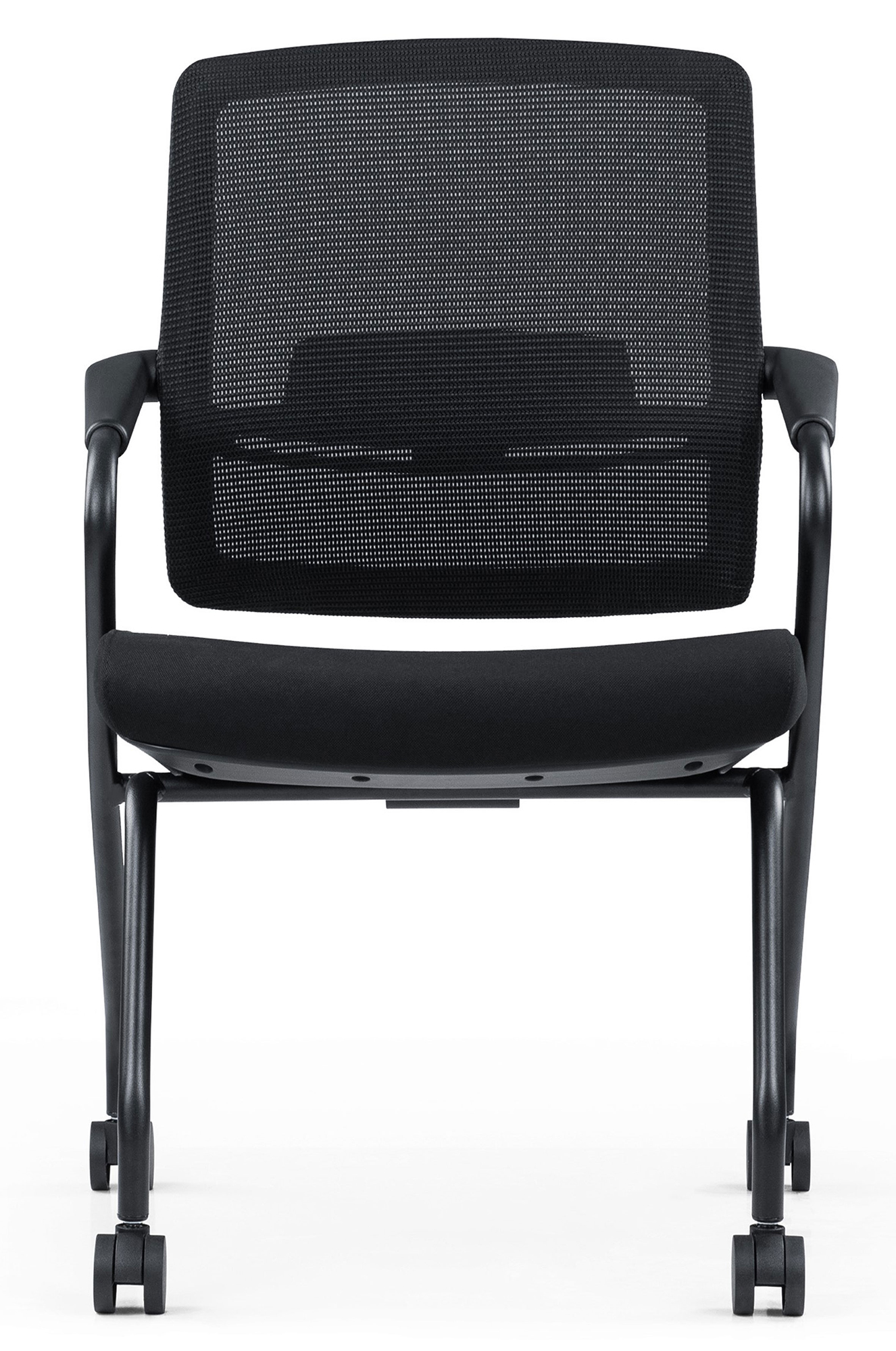 Estructura: de acero tubular de 7/8″ de diámetro, calibre 14; con acabado en pintura epóxica (electrostática) color negro, rodajas giratorias tipo dual en color negro y con descansabrazos que son una extensión de las patas traseras con pad cónico en polipropileno.