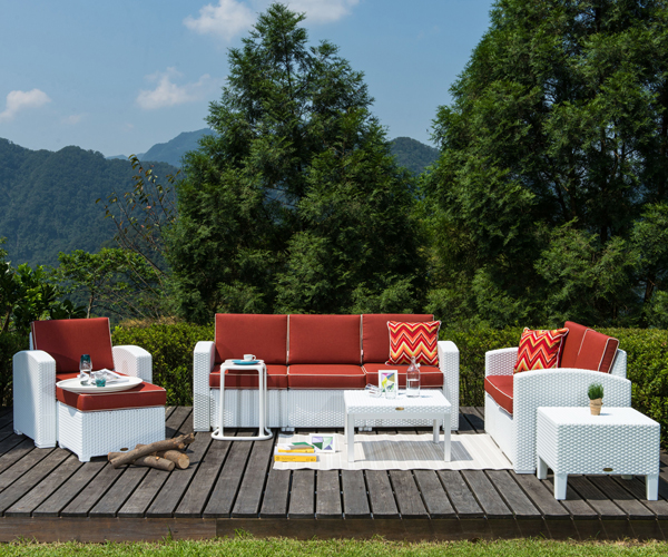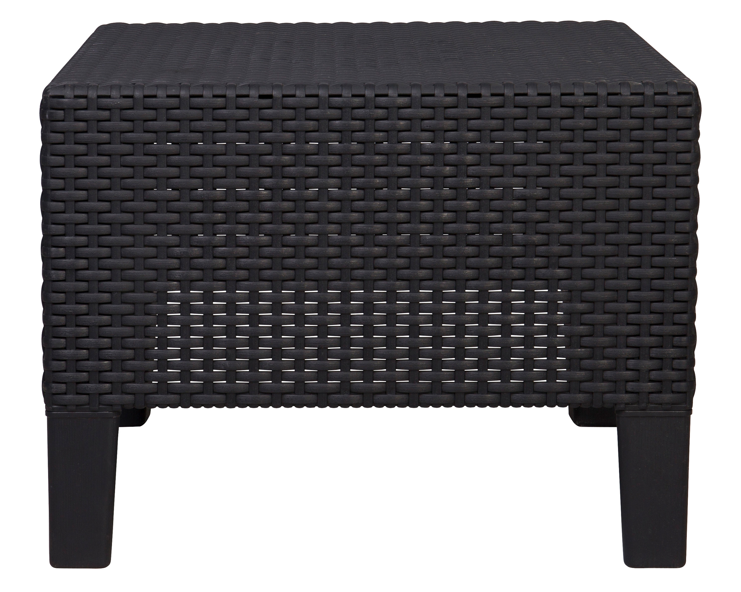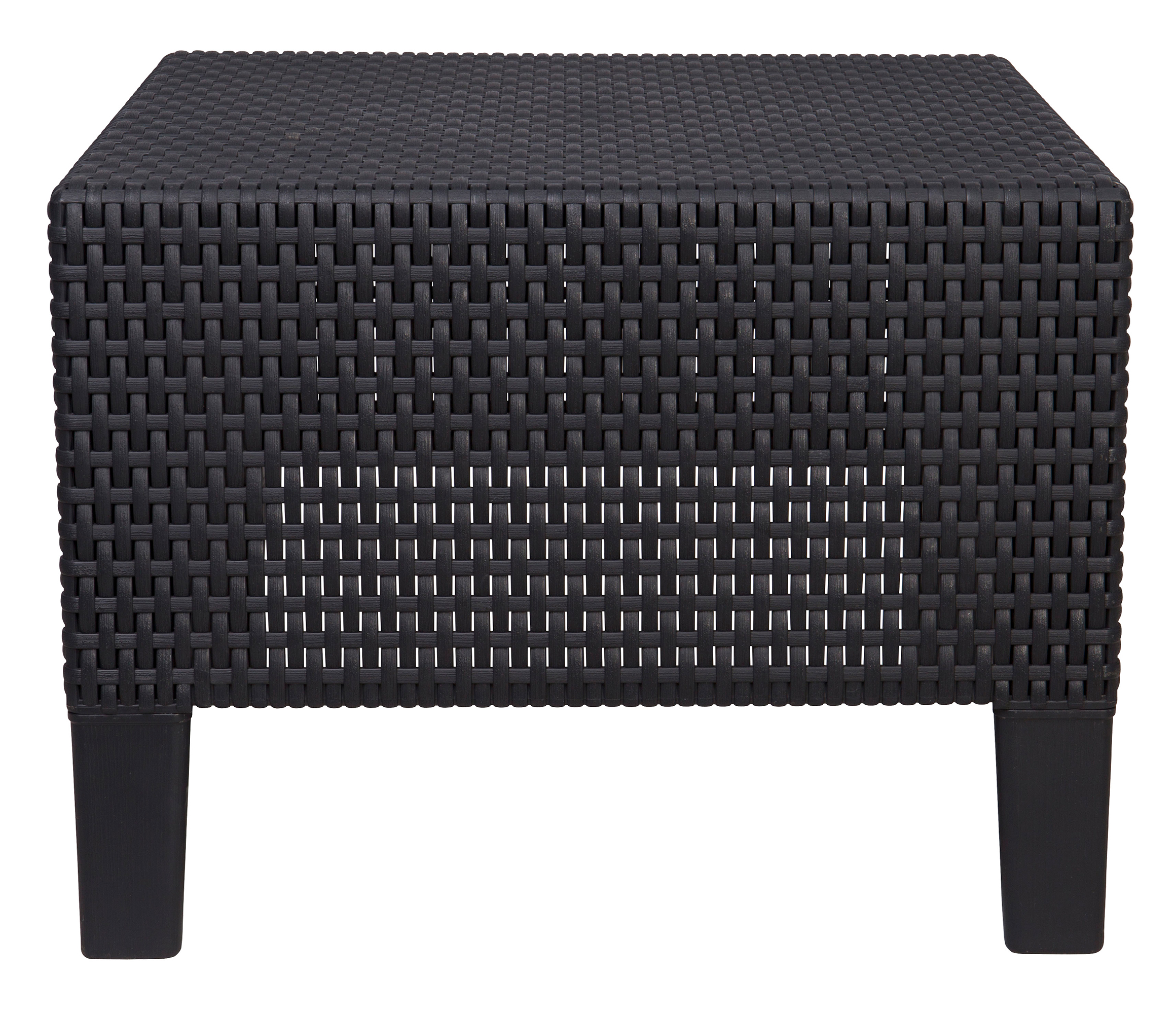 Banco: en polipropileno de alta resistencia y duración para intemperie e interior, resistente a los rayos ultravioleta (UV) y al ambiente salino con terminado en imitación rattán.