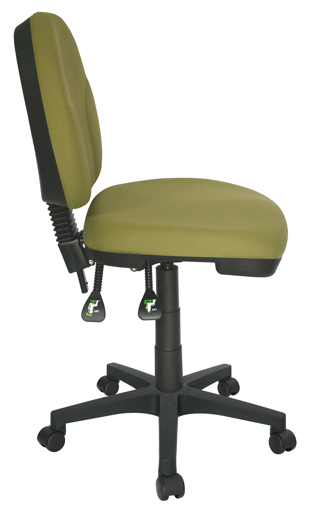 Mecanismo: En acero tipo multimodal de tres palancas; una para el accionamiento y bloqueo del pistón neumático, otra para ajustar y bloquear el ángulo de inclinación del respaldo (sistema de contacto permanente) y la última acciona y bloquea la posición de la inclinación del reclinaje.