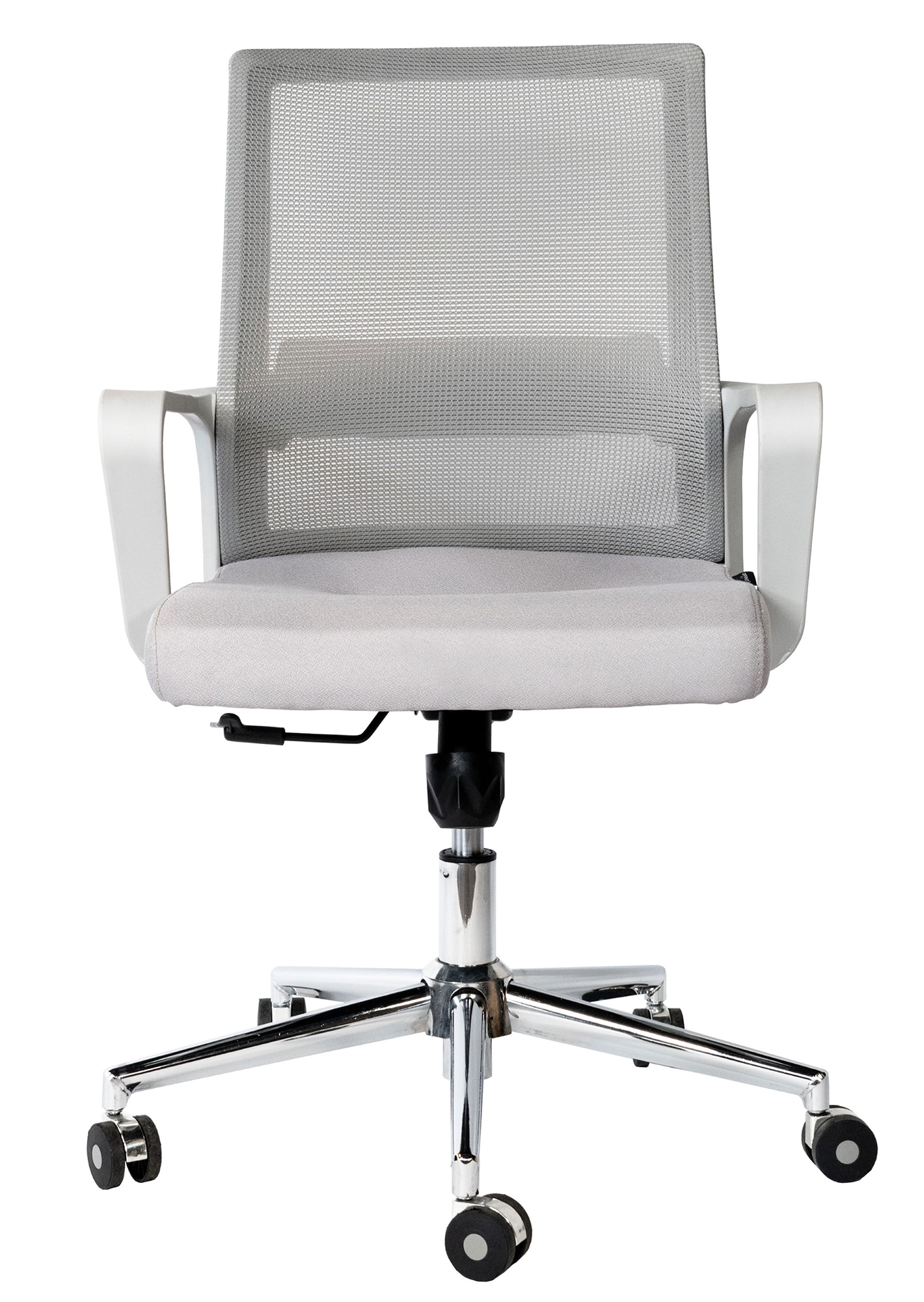 Tapiz: Respaldo de malla de color gris y asiento en tela 100% poliéster color gris, funda tapizada y pespuntada, con retardante de flama.