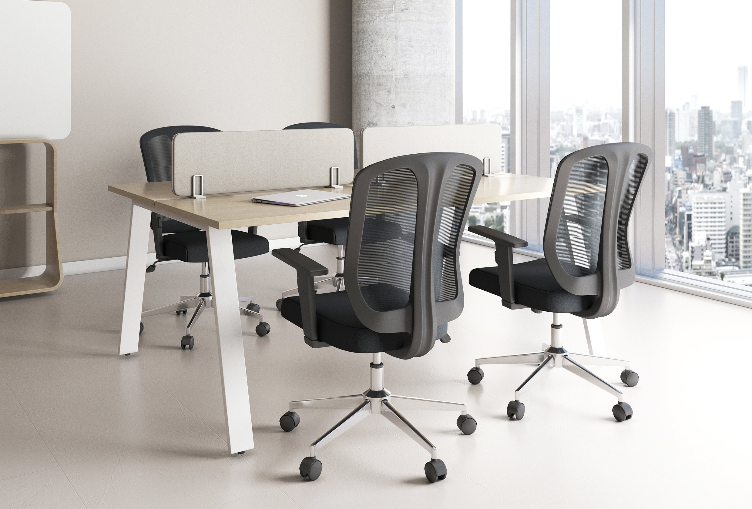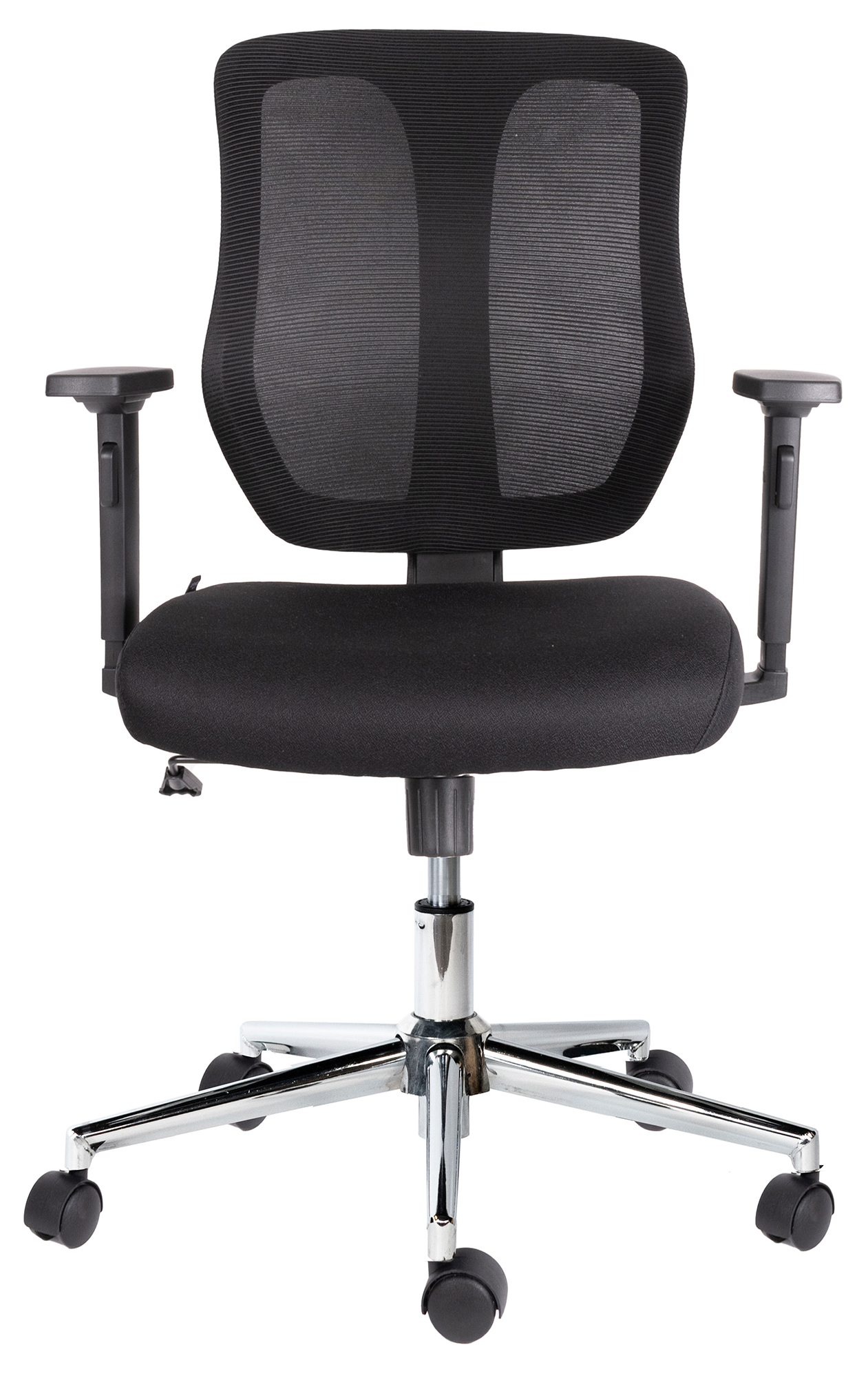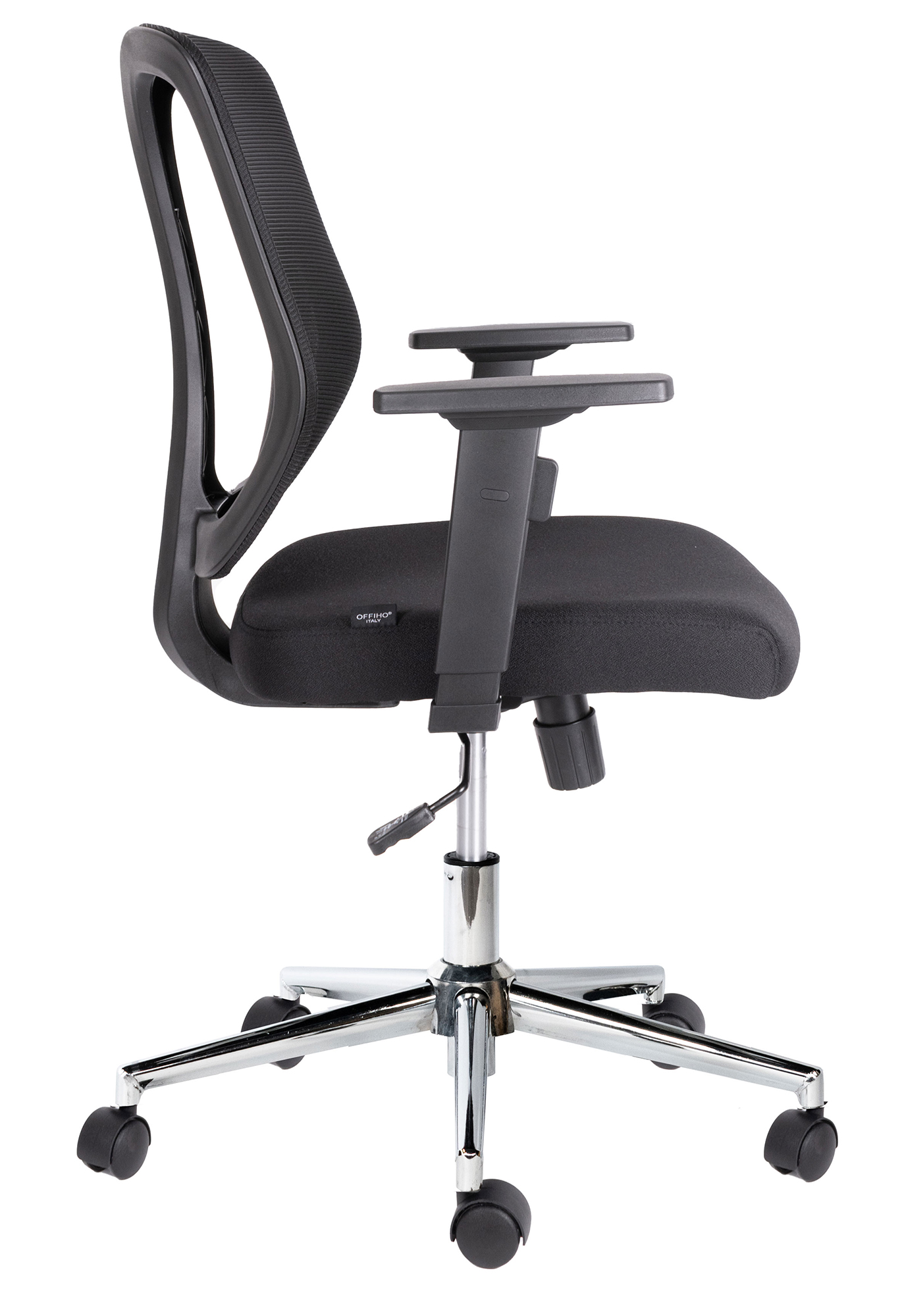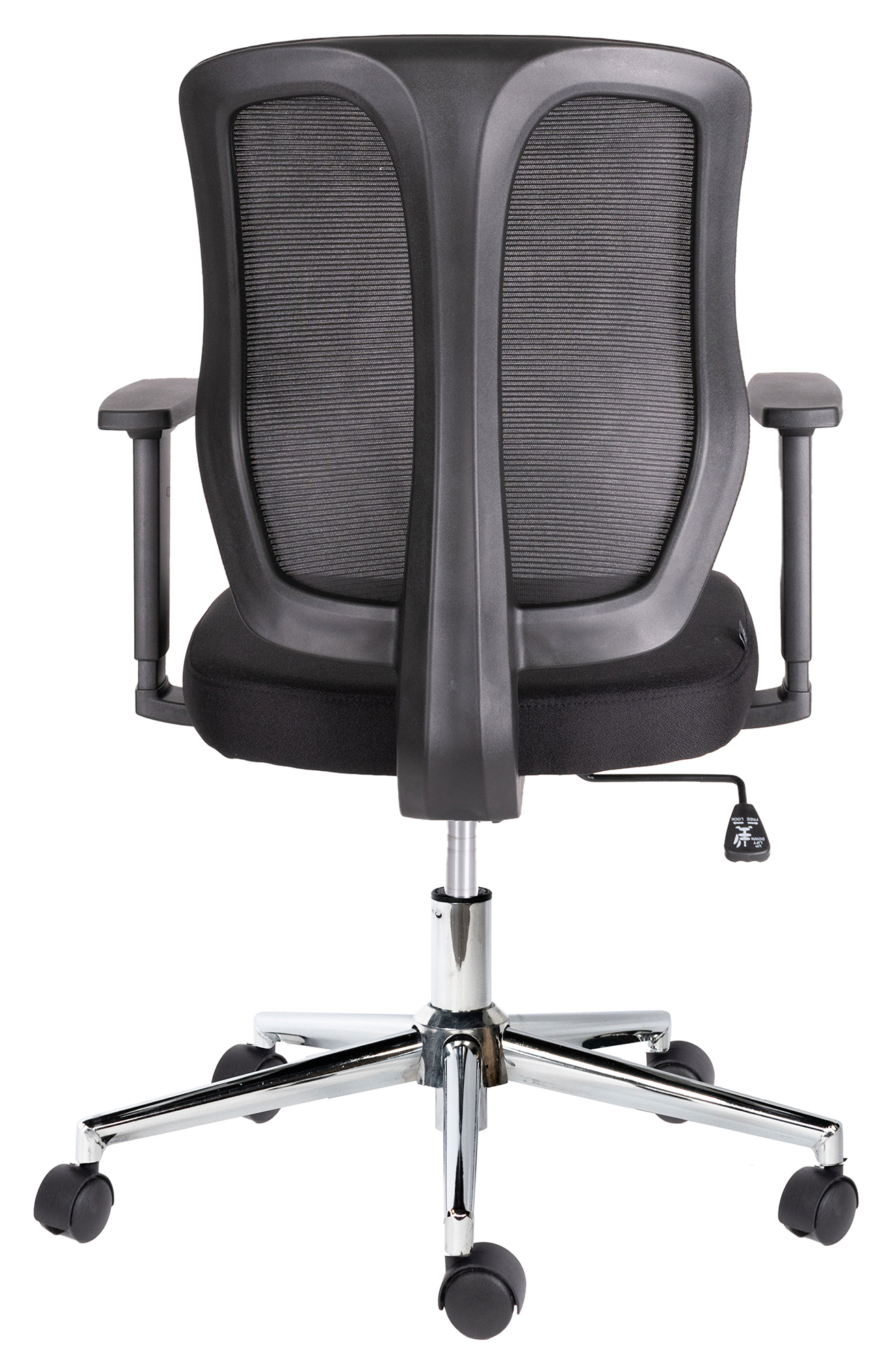 Tapiz: Respaldo de malla de color negro y asiento en tela 100% poliéster color negro, funda tapizada y pespuntada.